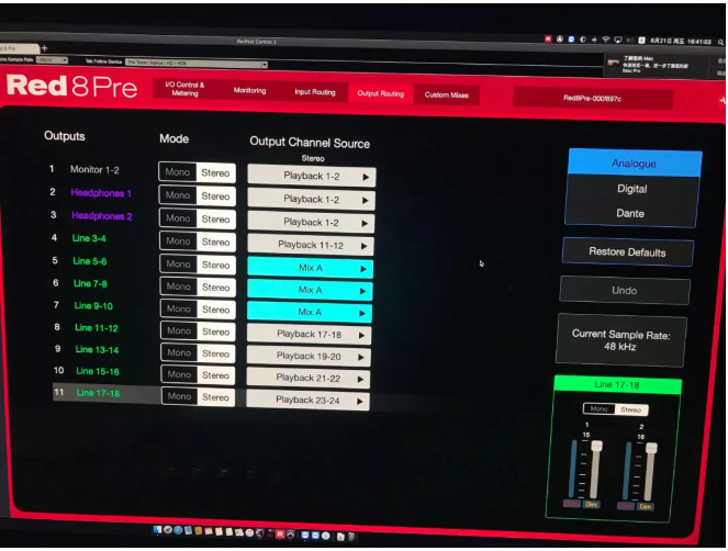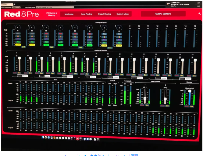 Focusrite Red 8PRE的接口類型豐富(共64進(jìn)64出),在系統(tǒng)中這一優(yōu)勢發(fā)揮得淋漓盡致:
