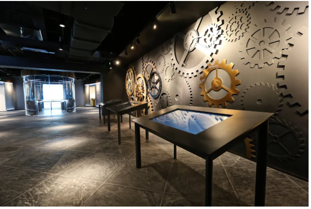 本工程飛亞達博物館博物館分為一層和二層兩個部分。一層主要以企業(yè)展廳為主,可用面積為700㎡左右。展示內(nèi)容囊括了飛亞達企業(yè)軌跡及品牌產(chǎn)品推介兩部分,以飛亞達品牌時間線為綱,通過燈光和投影的配合,展現(xiàn)出“時間簡史”、“逢時而生”、“審時而動“、“應(yīng)時而顯”、“馭時而創(chuàng)”五大主題區(qū)域,演繹出飛亞達的企業(yè)崛起之路。在這里,觀眾可以感受到飛亞達對時間的認知,對生活的主張,深刻體會到飛亞達品牌的內(nèi)涵底蘊和工匠精神。