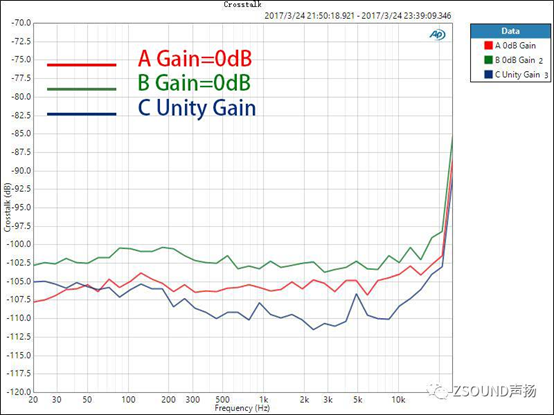 圖11. 三款調音臺的串擾對比