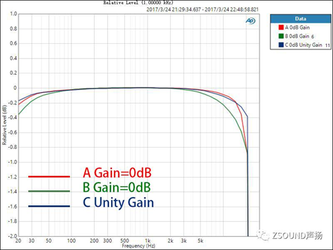 對于數字調音臺,我們不僅要關心話放增益在0dB時的THD+N比率,還需要了解到,話放增益在不同位置時的情況,因為這是使用中的實際情形。話放的增益在不同大小時,其引入的噪音和失真也是不同的,了解這一點對于用戶正確設置增益也很有參考意義。