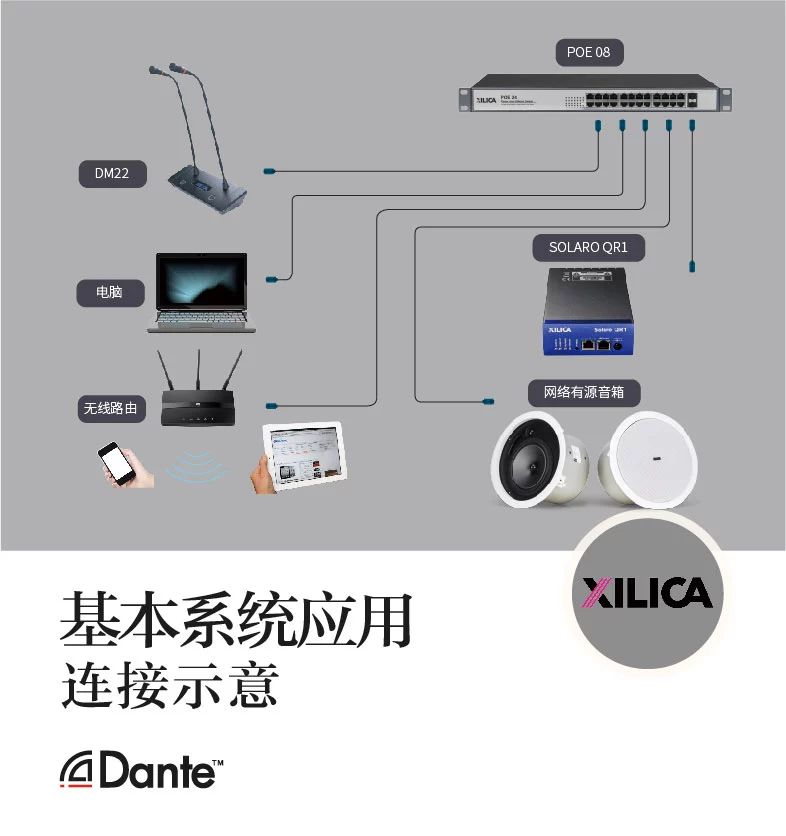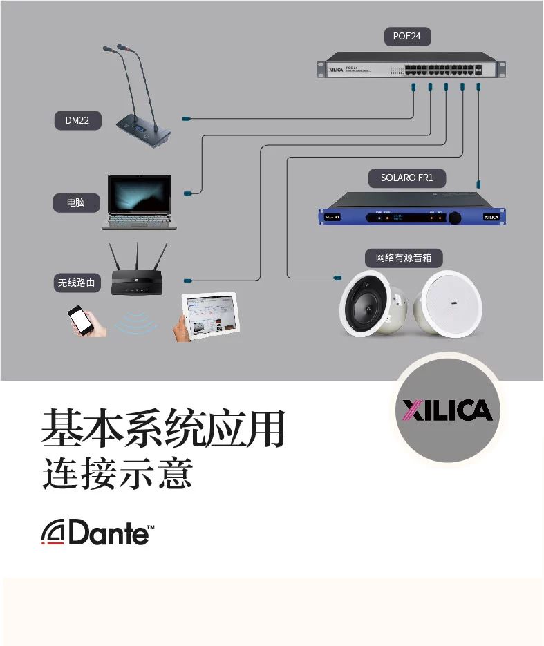這些獨(dú)特的優(yōu)勢,將成為Dante技術(shù)在專業(yè)音頻領(lǐng)域及其他工程領(lǐng)域的奠基石。可廣泛應(yīng)用于專業(yè)音響行業(yè)、廣播系統(tǒng)、電話會議系統(tǒng)、樓宇智能音頻系統(tǒng)、大型運(yùn)動會等場合。