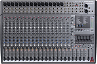 產品特點:帶數字EFX和GEQ的24路輸入4路總線錄音棚/現場制作調音臺 24路輸入,4路總線錄音棚/現場制作調音臺 輸入:16路話筒/高電平,4路立體聲 高保真超低噪音電路設計 擁有100種音樂效果的40位數字立體聲多效果處理器 9段立體聲圖示均衡器 帶4段均衡器的2路立體聲輸入聲道 帶音量和推桿前AUX控制的2路附加的立體聲輸入聲道 單通道聲道3段均衡器以及可切換式低通濾波器 各單通道聲道和主混音設有插入點 4個副編組和額外的單通道輸出 每聲道4路輔助輸出 各聲道削減指示燈和增益音量設置LED指示燈以及靜音控制 獨奏入位和推桿前監聽功能 全特性的通話控制區 中斷時可靜音所有話筒聲道的待機開關 可播放音樂的CD/tape錄音輸入