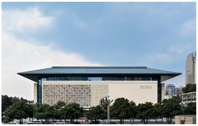 四川大劇院占地約17畝,項(xiàng)目總投資約8.7億元,其中購地款3.6億元;項(xiàng)目規(guī)劃總建筑面積約為59 000 m2,其中地上建筑面積27 000 m2,地下建筑面積32 000 m2。外型設(shè)計(jì)以漢代官式建筑風(fēng)格為主,巧妙地將原錦城藝術(shù)宮建筑的文化元素移植過來,形成了特有的建筑風(fēng)格。