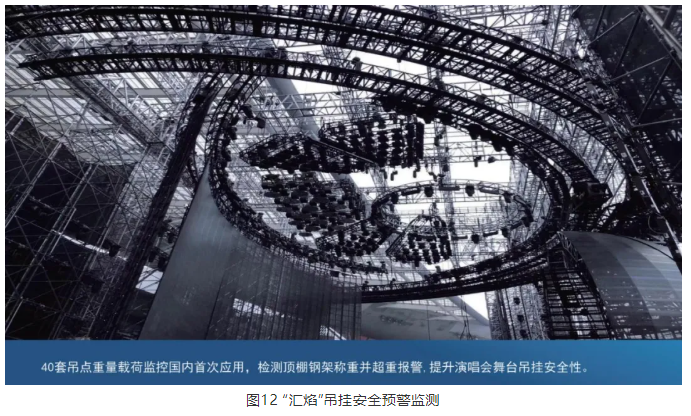匯焰的吊掛安全管理系統(tǒng)(見圖12)具備完善的預(yù)警監(jiān)測功能,除了稱重超載報警監(jiān)測功能,還具有硬件限位、軟件限位、自動組停、SIL2安全防護等級安全急停,以及電機溫度監(jiān)控等功能,為大型混合吊掛系統(tǒng)提供了多角度自適應(yīng)的安全保障能力。其中一個亮點是匯焰稱重式卸扣,能實時監(jiān)測載荷重量,具有超載預(yù)警功能,可方便組網(wǎng)使用。