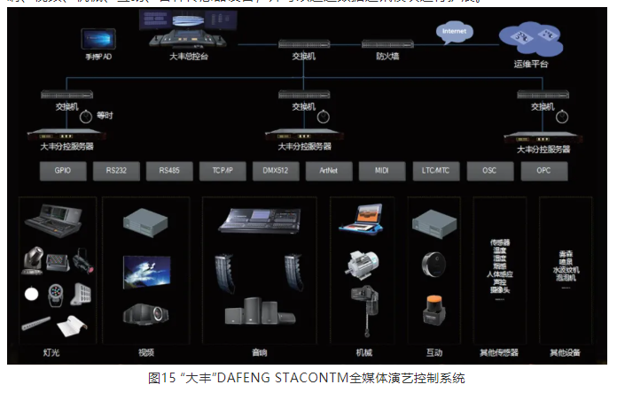 除了大型全媒體系統(tǒng)的功能融合日益完善和強大,一些以傳統(tǒng)舞臺機械操控為核心的綜合控制系統(tǒng)也融合了多種新技術(shù)新手段,有效解決了舞臺機械系統(tǒng)與燈光音響等非機械設(shè)備的同步演出問題。