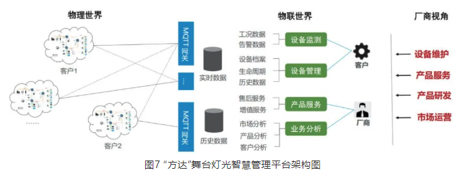 方達舞臺燈光智慧管理平臺系統(tǒng)(見圖7)基于移動互聯(lián)網(wǎng)和云計算技術(shù),通過終端傳感器將演出現(xiàn)場的電氣安全數(shù)據(jù)實時傳輸至云服務(wù)器,為用戶提供不間斷的數(shù)據(jù)跟蹤、統(tǒng)計分析和安全監(jiān)管。用戶能夠監(jiān)控每臺調(diào)光設(shè)備的實時數(shù)據(jù)、歷史數(shù)據(jù)、報警日志和統(tǒng)計信息。系統(tǒng)自動進行數(shù)據(jù)采集、存儲、分析,實時發(fā)送海量數(shù)據(jù)至云端存儲,并在云端對這些數(shù)據(jù)進行分析,以制定相應(yīng)的安全方案。