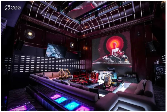 9米挑高空間,讓人耽迷於極致自如半透明水晶屏幕與可升降星體造型燈跟隨音樂韻律變幻姿態(tài)。