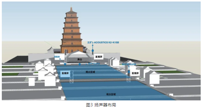 還有一種比較常見的擺位,在1777年由德國作曲家阿貝福格勒提出,19世紀下半葉被廣泛采用,通常稱之為歐式(德式)擺位。這種擺位關系下,有利于首席小提和首席大提、大提和貝斯的交流,特別是在合奏樂段的部分。在該演出中,一提和二提兩組相對而坐,會有一提二提一問一答的樂段,使聲像形成立體效果,且由于二提的f音孔朝向舞臺內側與f音孔朝向觀眾的一提音色也有著微妙并明顯的差異。任何一種擺位都無法十全十美,直到現在對于采用哪種擺位方式,音樂家們還多有爭執。一種觀點認為,德式的擺位需要得到側墻面的支持,對于音樂廳建聲環境要求較高;還有一種觀點認為,美式的擺位雖然能夠更加容易分辨不同的樂器組,但會使樂隊右側低頻較重,導致空間上的不平衡。一場音樂會同時演奏橫跨不同時期的曲目,這些曲目創作和演奏時的樂團擺位都不盡相同,例如上文提到的一提和二提一問一答的效果很容易湮沒在其他擺位中相鄰的聲部里。但現場隨著曲目的要求變換樂隊擺位并不現實,采用電聲系統的調整可在一定程度上彌補改善擺位帶來的缺點,通過調節EQ、混響、PAN等手段能夠實現各個聲部相對定位關系的改變,從而更好地表現不同作品。例如上文提到的一提和二提一問一答效果的實現(當然要注意點補傳聲器和主傳聲器的關系調整,也需要在效果和回授前有效增益之間找到平衡),以及特定擺位帶來的空間不平衡,再加之合理地使用如DearVR MICRO等融入HRTF( Head-Related Transfer Function )原理的空間模擬插件,從而“創造”出不同的空間體驗。根據美式擺位,合唱團一般會由女聲站在男聲前面,按照從左到右女高音-女中音-男高音-男低音來獲得平衡。對于合唱團來說,音色統一和聲音足夠清晰是比較重要的。合唱由多個非相干聲源組成,雖然團員按照站位排開,但在空間上對某一個團員甚至一個聲部進行分辨都是困難的。在音樂廳的舞臺上,由于側墻及返聲板的反射,合唱給人以包圍感、融合感。但在戶外的環境里沒有了這些反射聲,合唱的音效就要通過拾音、混音實現。合唱團的拾音一般只是3~4支傳聲器,拾音距離按照3∶1規則分布,以減少相位抵消。通常情況下,離傳聲器較近,尤其在傳聲器軸線的合唱演員聲音會較為突出,使得整個合唱在整個系統里的定位固定,群感融合度不夠。通過使用壓縮器修整冒尖的聲音,通過使用效果器來模擬早期反射聲,以提高整體的融合度。室外的現場擴聲體驗與音樂廳內“沉浸”的聽聞感受有著從底層邏輯上的不同。音樂廳內的現場體驗決定于音樂廳的聲學環境及聽音位置。室外現場擴聲體驗決定于拾音、混音技巧以及擴聲系統的設計,通過技術手段實現聲場的重構、再構,達到聽聞的一致性。隨著電聲技術發展,將給現場聽聞帶來更豐富、更舒適的體驗,亦如當年技術發展(動力學、材料學,甚至是建筑技術)對于歐洲樂器制作、演奏、作曲技法乃至音樂風格產生深遠而持久的影響。2.3.2 拾音的設計思路由于調音臺輸入通道的限制,沒有對每一件樂器進行單獨拾音,采用對聲部首席及前檔、對聲部整體拾取的方案,見圖5;除去演出流程相關無線傳聲器、視頻等,樂團合唱團以及獨奏共使用72個通道,見表1。由DPA4006C作為主傳聲器,SCHOEPS MK2s用于側展,相當于與主傳聲器形成了一個大的Decca Tree拾音制式。主傳聲器負責整個樂隊的基準平衡,側展傳聲器用于構建樂團的空間效果。