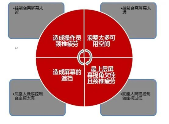 某公司大屏系統遵循以上兩個原則,所計算出的大屏底座高度及操作臺與屏幕的距離,符合人體工程學設計,讓客戶有最舒適的觀看角度、最佳的觀看效果。
