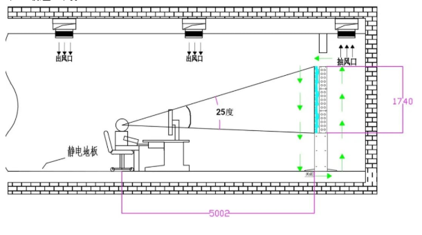 2)  大屏幕顯示墻與維修通道的地面最好能涂地面防塵漆,能有效防止地面灰塵對顯示光學設備的影響。