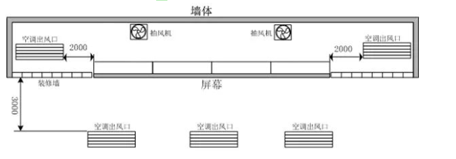 2)  位于大屏幕顯示系統維修通道內的空調(中央空調或柜式空調),其出風口位置應盡量遠離后側箱體,并且出風口的冷風絕對不能對著屏幕直吹,要朝遠離屏幕的方向吹,以避免屏幕冷熱不均勻而損壞和結露現象。