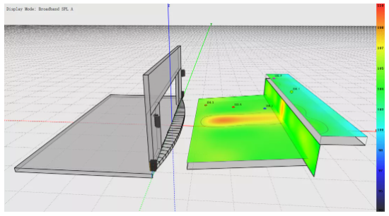 值得一提的是,這次春晚的舞臺是非常干凈的,無論是模擬預(yù)測,還是實地測量,都顯示出主擴系統(tǒng)對舞臺是幾乎沒有干擾的,聲壓級小且直達聲少,并且最終的實際聽感,主擴系統(tǒng)對舞臺的不良串音是極其微小的。