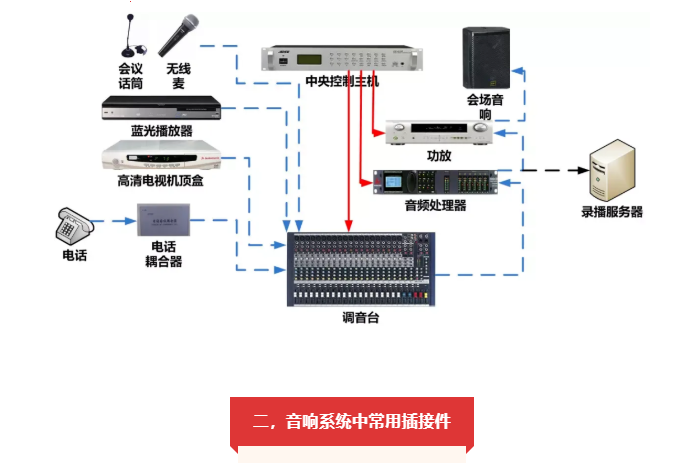 目前,專業(yè)音響設(shè)備的內(nèi)部電路信號接口基本上都是平衡式的接口,一般為卡農(nóng)或者大三芯插座。對于專業(yè)音響設(shè)備之間的連接盡可能全部采用平衡式連接,以防止莫名其妙的信號干擾。