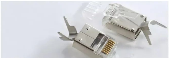 可以看到,七類網(wǎng)線水晶頭,帶有金屬屏蔽外殼。因?yàn)?類線采用的是單對(duì)屏蔽,然后再總屏蔽的結(jié)構(gòu),所以七類水晶頭是帶屏蔽的,夠更有效消除線對(duì)之間的串?dāng)_。